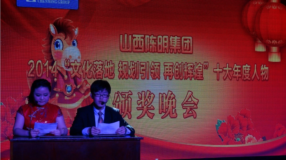 2014年2月16日15時許,陳明集團2014“文化落地、規(guī)劃引領(lǐng)、再創(chuàng)輝煌”十年度人物頒獎聯(lián)歡會于桔子酒店隆重開幕。本次聯(lián)歡會對陳明的十大人物給予了表彰,并邀請每位員工家屬到場觀看員工們自編自演的節(jié)目。