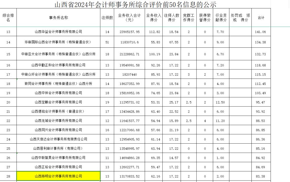 祝賀山西陳明會計師事務(wù)所有限公司獲山西省事務(wù)所綜合排名28名